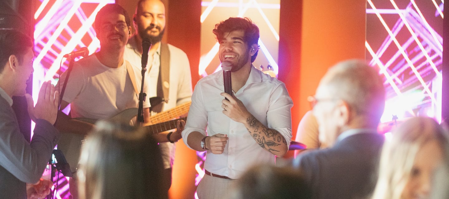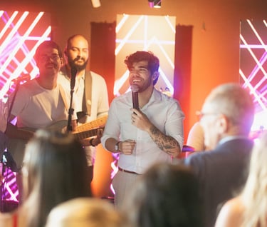 No palco, nada é feito no automático. Cada show é pensado pra conectar com o público, sentir o momento e criar um ambiente singular.Com pouco mais de um ano desde sua criação ja se apresentou em grandes palcos, conquistando noivos, convidados e cerimonialistas.